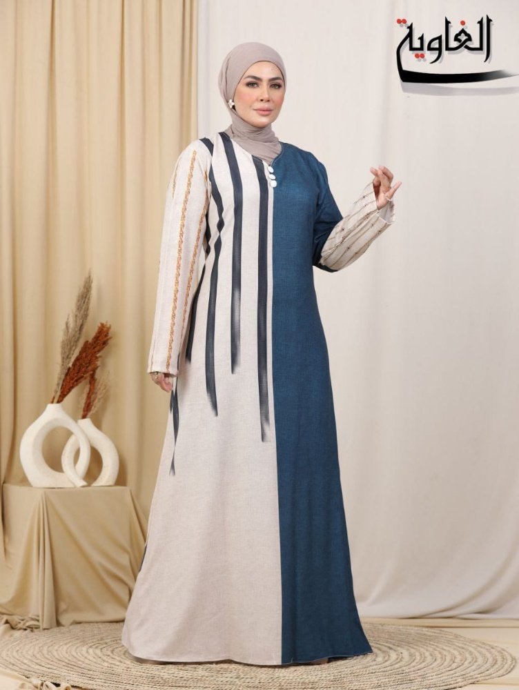 أضيفي لمسة من الرقي إلى ملابسك المنزلية مع هذه العباية المميزة بتصميمها الهندسي الجذاب. تتميز بنقشات “المعين” (السمبوكسة) المطرزة بدقة بخيوط كونتراست (لون مغاير) تبرز جمال اللون الأساسي للعباية. القصة واسعة ومريحة (Free Flow) مع فتحة رقبة على شكل V تمنحك مظهراً أنيقاً ومريحاً في آن واحد. مثالية لاستقبال الضيوف أو التجمعات العائلية.